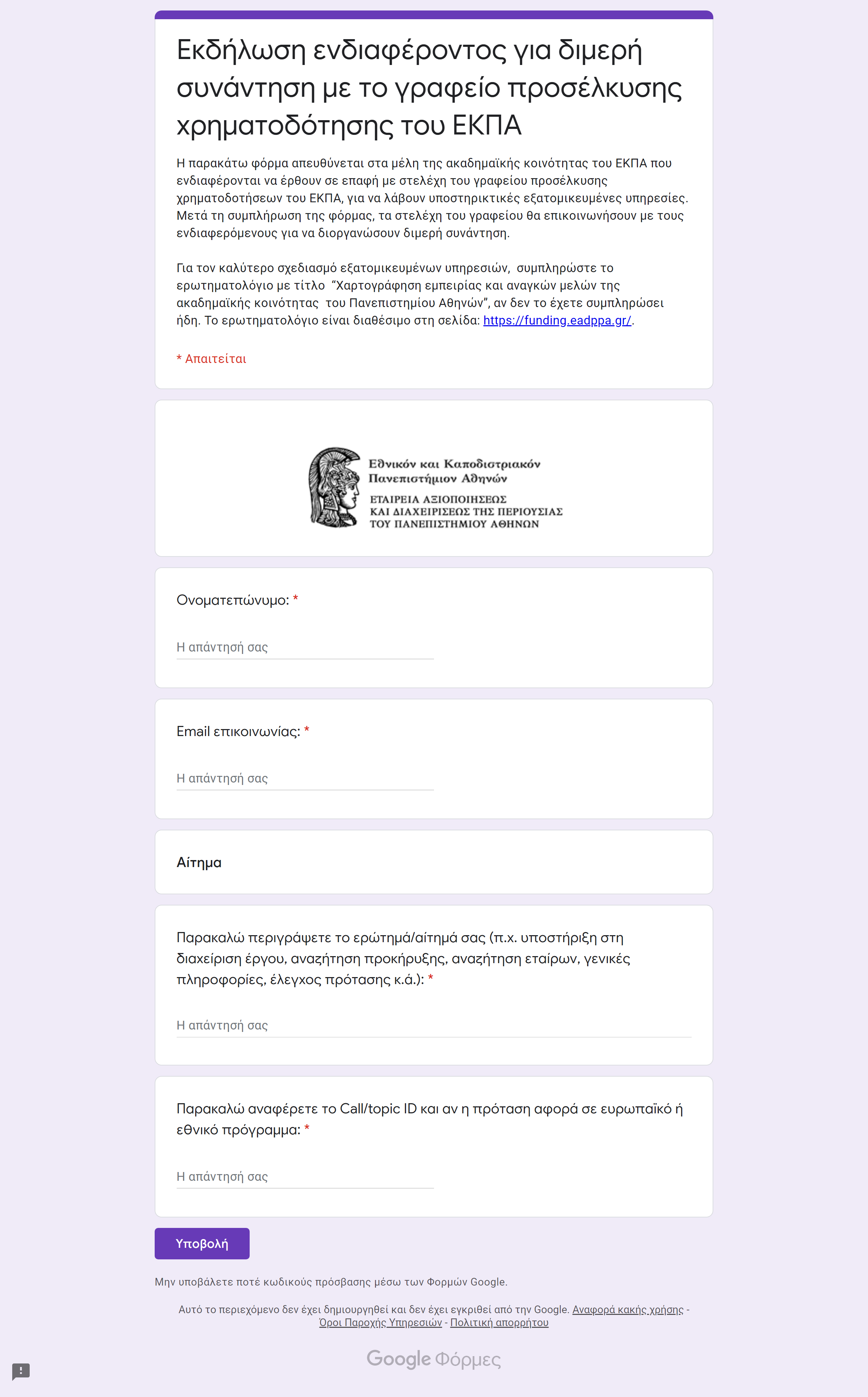 Εγγραφείτε στο newsletter του ΓΡΑΦΕΙΟΥ ΠΡΟΣΕΛΚΥΣΗΣ ΧΡΗΜΑΤΟΔΟΤΗΣΕΩΝ ΤΟΥ ΕΚΠΑ